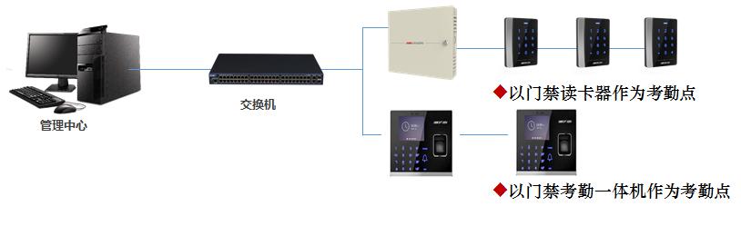 考勤管理系統通過綜合管理平臺實現與數據庫的數據交互,包括人員資料、卡片資料、刷卡數據等多種資料。硬件的設置、權限的發放以及人員的卡片發放等由綜合管理平臺統一完成。系統的架構如下圖所示: