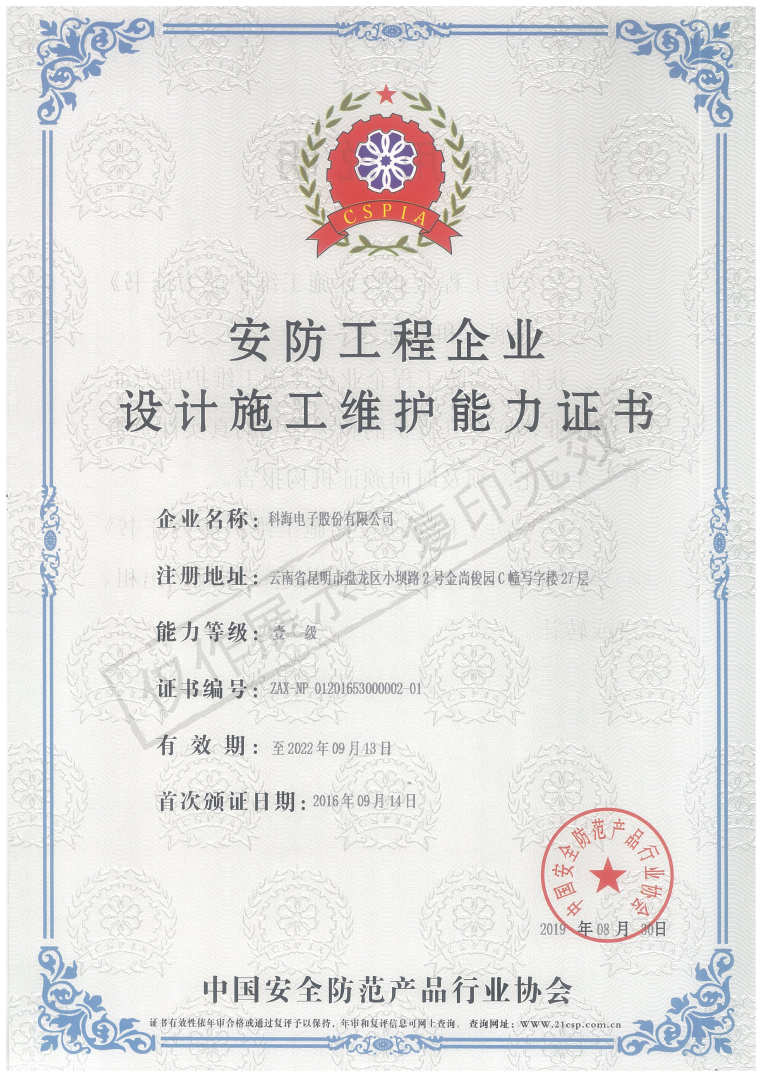 安防工程企業(yè)設(shè)計(jì)施工維護(hù)能力證書